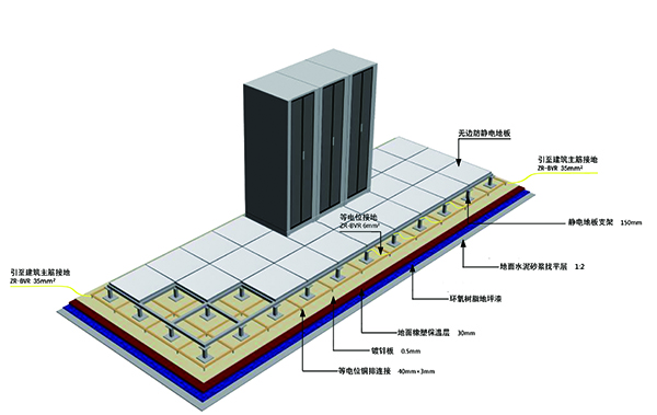 機房作為數(shù)據(jù)的處理和樞紐中心,成為信息系統(tǒng)中重點保護對象,而機房設備多,電源線、通訊線、數(shù)據(jù)線互相交叉,又極易遭受感應雷擊,所以機房防雷問題是系統(tǒng)集成中必須重點考慮的問題,為確保各智能化系統(tǒng)穩(wěn)定可靠運行及保障機房有良好的工作環(huán)境,設計須考慮做到技術先鋒、經(jīng)濟合理、安全適用。除滿足《機房防雷設計規(guī)范》(GB50174-93)與《建筑物防雷設計規(guī)范》(GB50057-94),《建筑物電子信息系統(tǒng)防雷技術規(guī)范》(GB50343-2004)要求的同時,絕緣體的靜電電位不應大于1kv,機房內(nèi)的導體必須與地面作可靠的聯(lián)接,不得有對地絕緣的孤立導體,接地電阻不應大于4Ω,同時還應符合現(xiàn)行國家有關標準規(guī)范的規(guī)定。